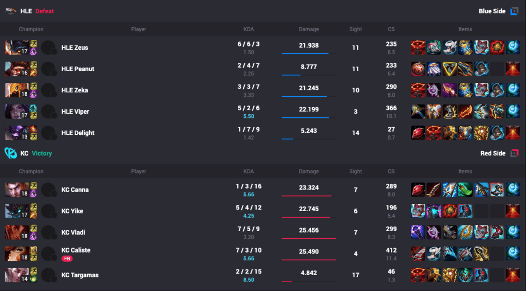 Ritorno alla realtà: la draft degli HLE è ingestibile, con priorità in tutte le corsie. Lo Gnar di Zeus, famoso per essere uno dei migliori di sempre, lo dimostra ancora una volta. I KC non riescono a fare nulla e subiscono gli Hanwha per tutta la partita senza possibilità di risposta.